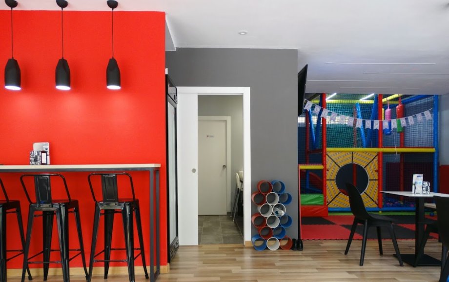 Cafeteria with children's play area.