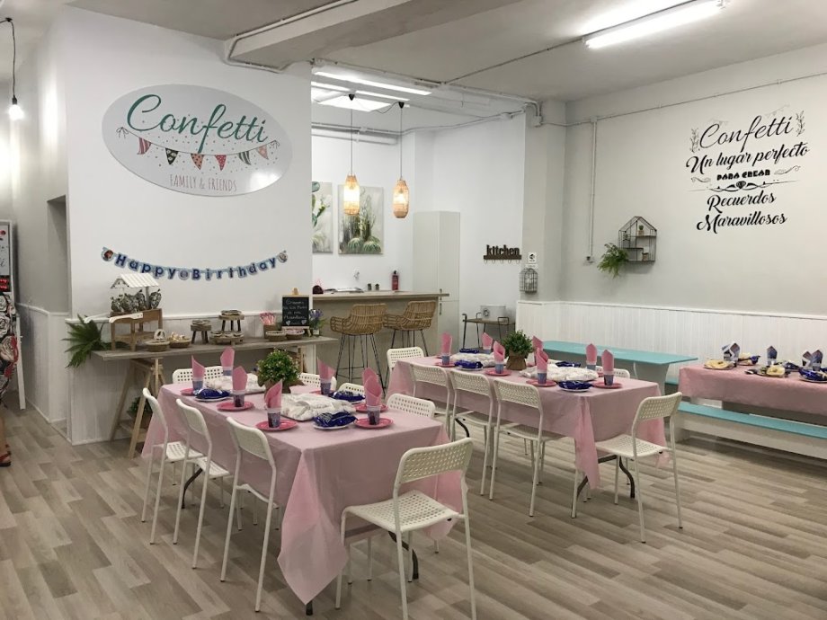 Confetti es tu lugar ideal si buscas un espacio equipado y acondicionado para reuniones familiares y de amigos. También, un local con parque de bolas para cumpleaños infantiles, comuniones, bautizos y todos los eventos que quieras celebrar en Agost, Alicante, decorado con una estética ideal para celebraciones de todo tipo, desde fiestas infantiles y para adultos hasta reuniones de empresa.